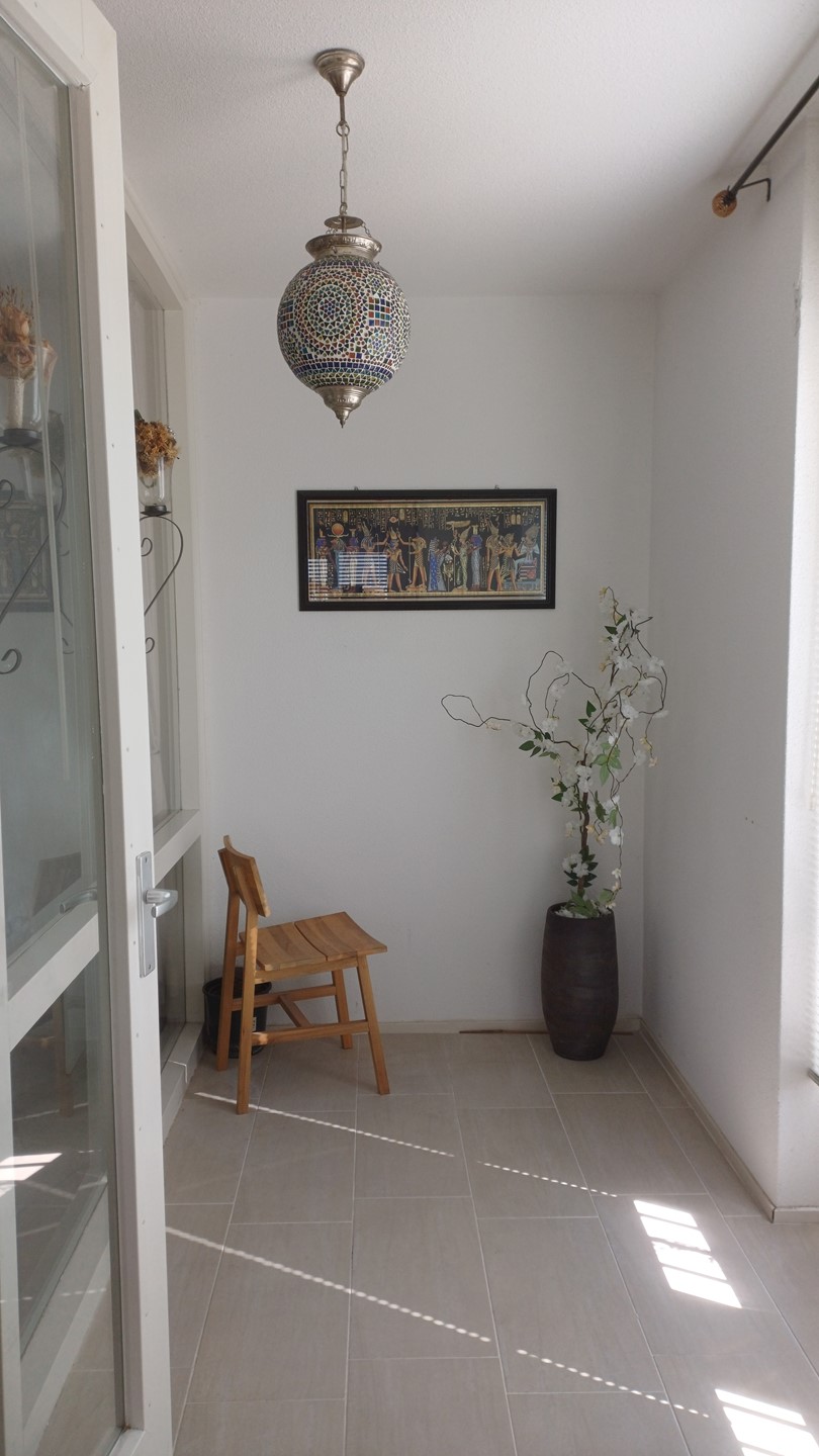 A neat and wide gallery leads to your front door. The spacious hallway provides access to all areas of the home and includes a coat area, meter cupboard (with district heating), a storage room with a ventilation unit, and connections for a washing machine and dryer. You’ll also find a modern toilet and an intercom system with a color camera.