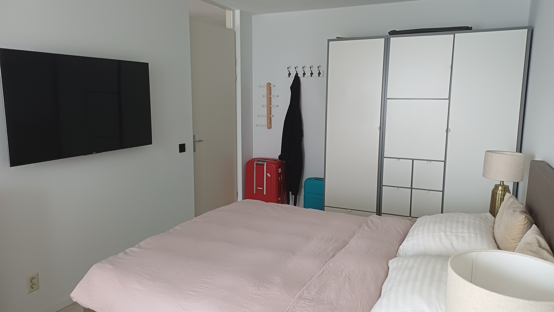Het appartement beschikt over drie slaapkamers: twee kleinere kamers die ideaal zijn als kinderkamer of werkkamer, en een ruime hoofdslaapkamer. De luxe badkamer is smaakvol betegeld en uitgerust met een ligbad, een inloopdouche en een wastafelmeubel met grote spiegelwand.