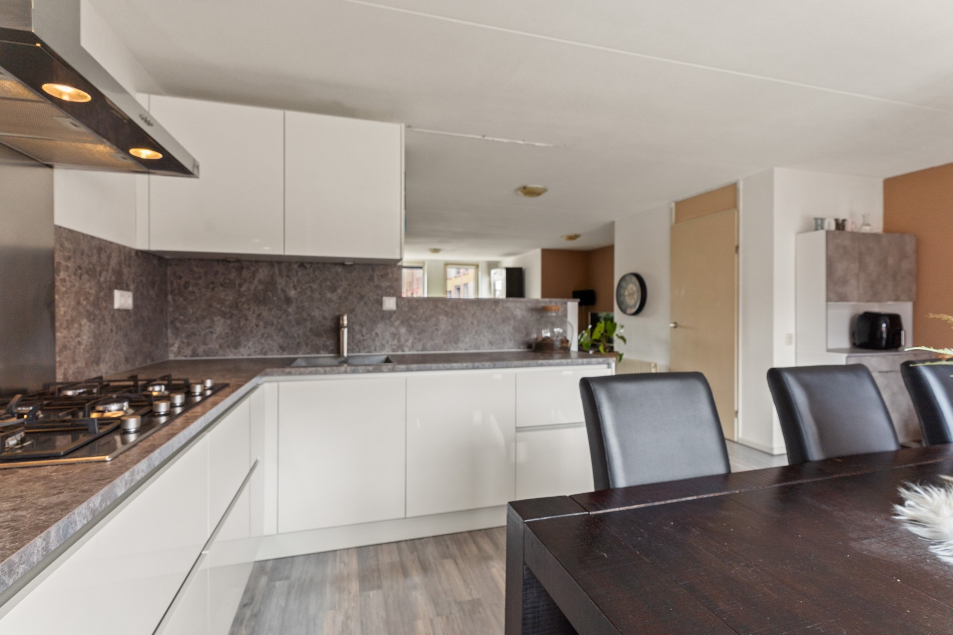 Met een woonoppervlakte van 110 m² biedt deze woning verrassend veel leefruimte. De doorzonwoonkamer is licht en prettig ingedeeld en directe toegang tot de tuingerichte woonkeuken. De witte hoekkeuken is voorzien van moderne inbouwapparatuur – perfect voor wie graag kookt en geniet van gezellig tafelen met uitzicht op de tuin. Praktische kast met vloertegels en aansluiting voor de wasmachine.