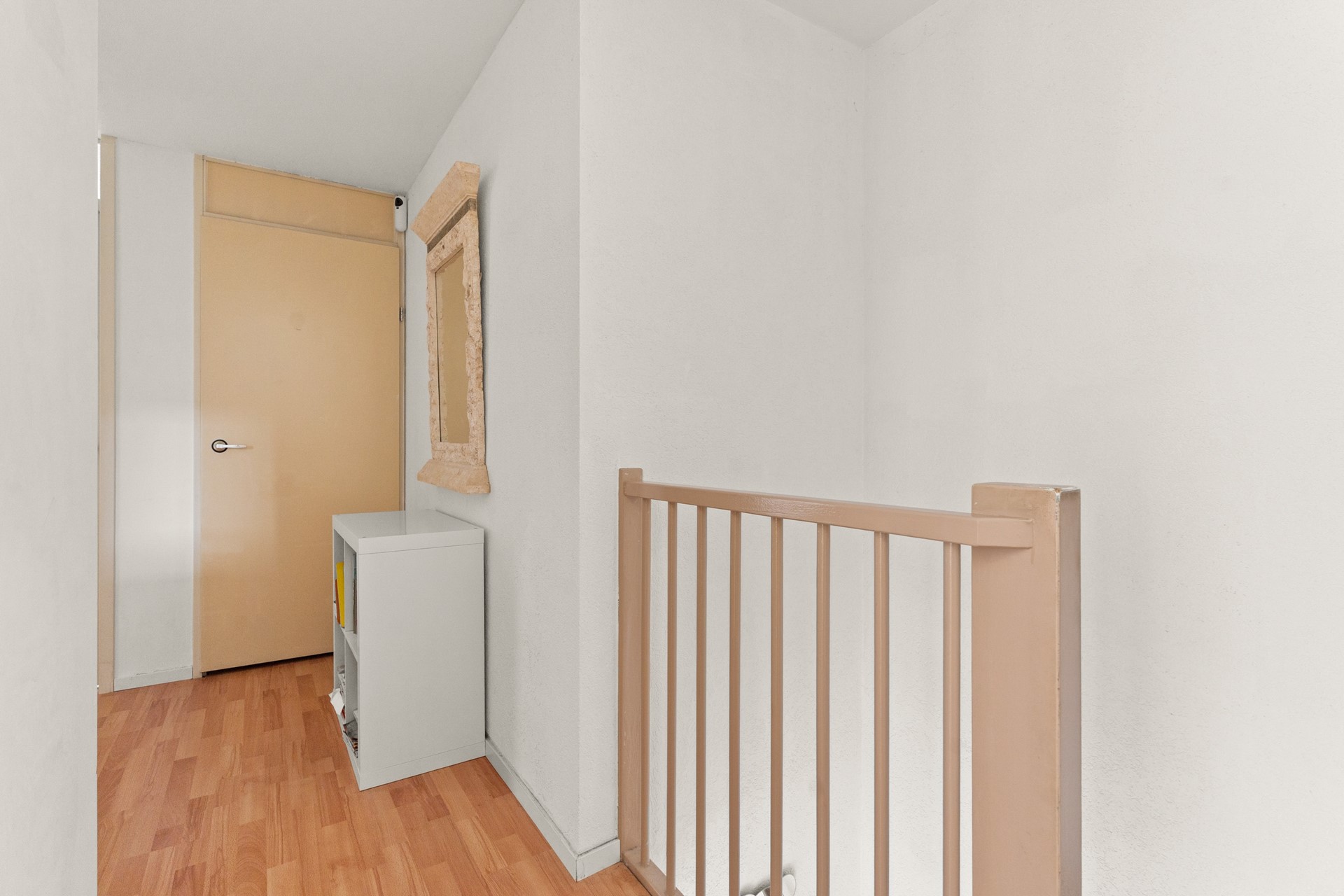 Op de verdieping bevinden zich drie goed bemeten slaapkamers, een ruime overloop en de vernieuwde badkamer met inloopdouche, vrijhangend toilet en wastafelmeubel. Vanuit de achterzijde is toegang tot het zonnige dakterras met uitzicht op de achtertuin – een heerlijke plek om te ontspannen. De voordeur bevindt zich aan het hofje, parkeren kan ruimschoots in de straat aan feitelijk de achterzijde van de woning.